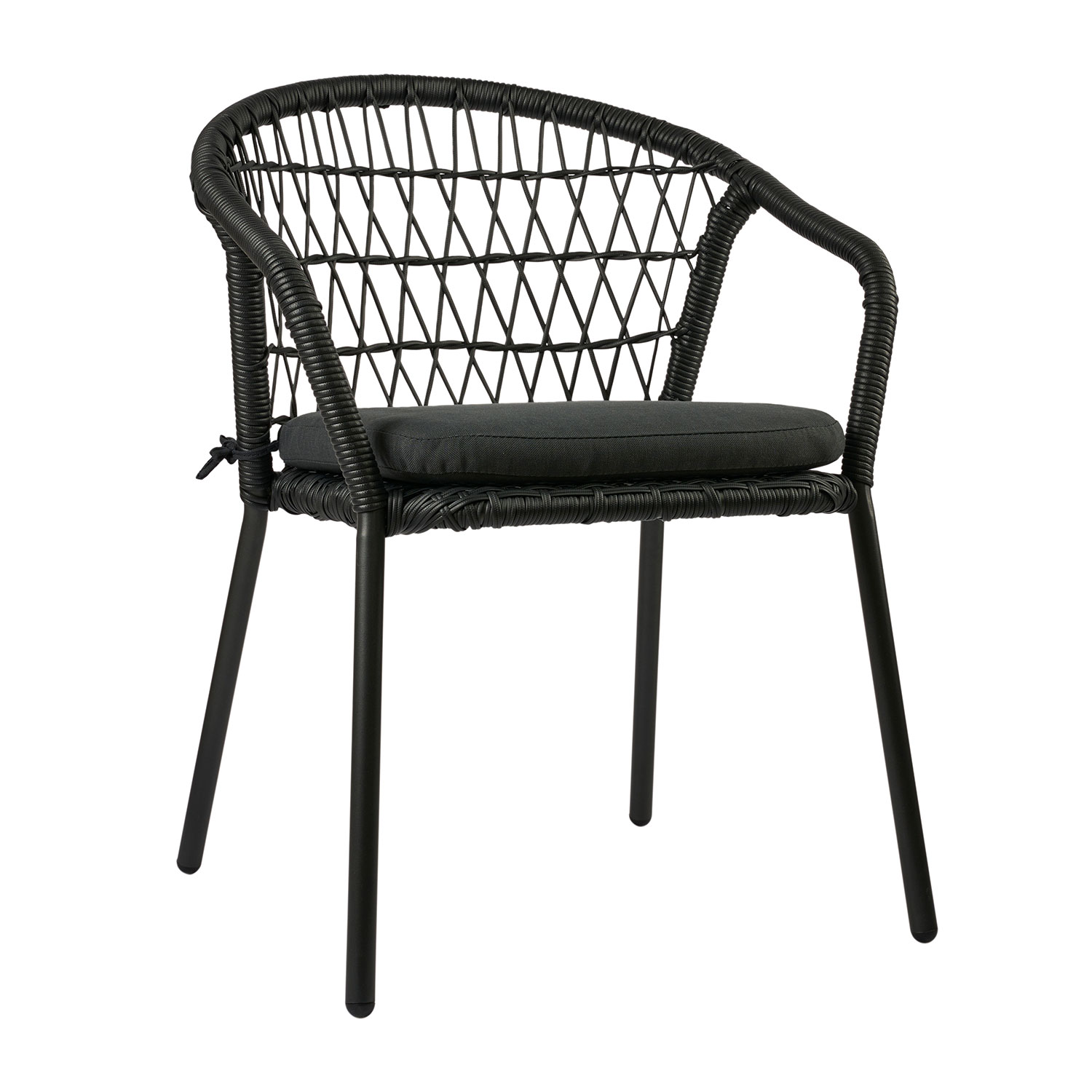 Μια πολυθρόνα για επαγγελματική χρήση κατασκευασμένη από γαλβανισμένο μεταλλικό σκελετό διπλής ηλεκτροστατικής βαφής σε χρώμα μαύρο ματ. Είναι επενδεδυμένη με υλικά τελευταίας τεχνολογίας, όπως το wicker rope σε μαύρο χρώμα, το οποίο δεν κρατά υγρασία και έχει μεγάλη διάρκεια ζωής. Η Nuera είναι στοιβαζόμενη και διαθέτει μαξιλάρι 3 εκ. Η Nuera είναι η καλύτερη επιλογή για τον επαγγελματικό σας χώρο.