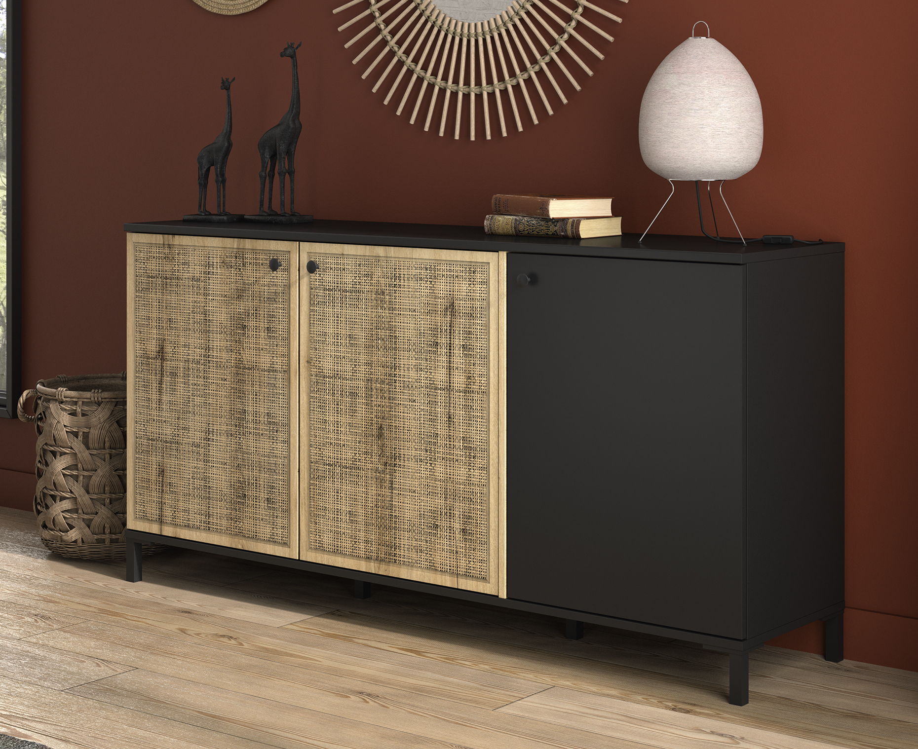 Batam μπουφές με 3 πόρτες 160x40x81εκ. Helvezia Oak / Μαύρο